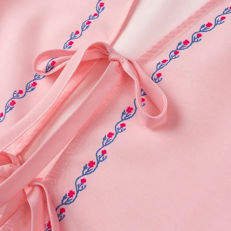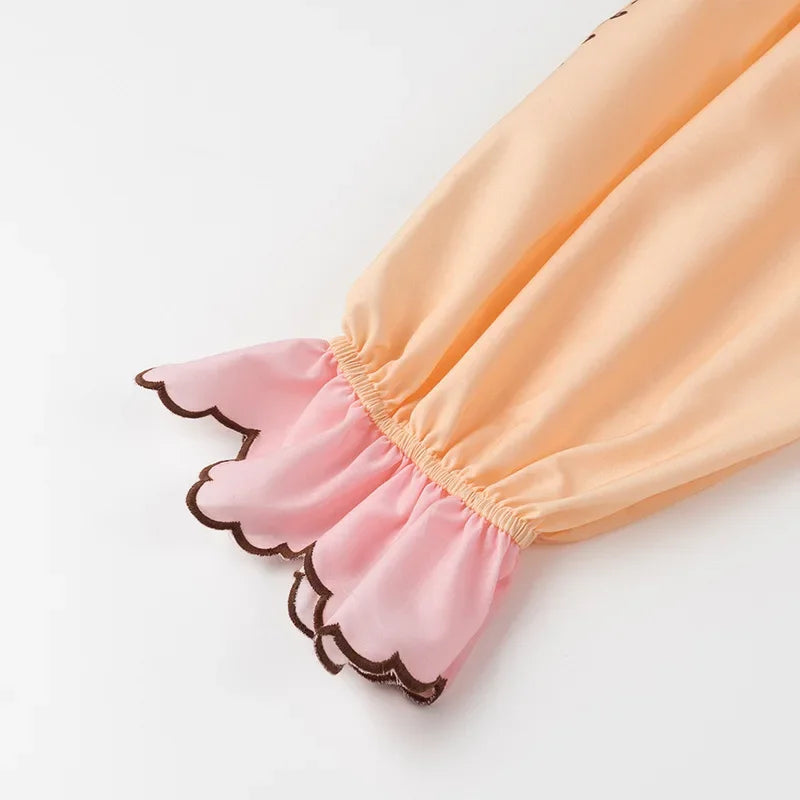 Blusa en dos colores con bordados en las mangas y final de camisa.