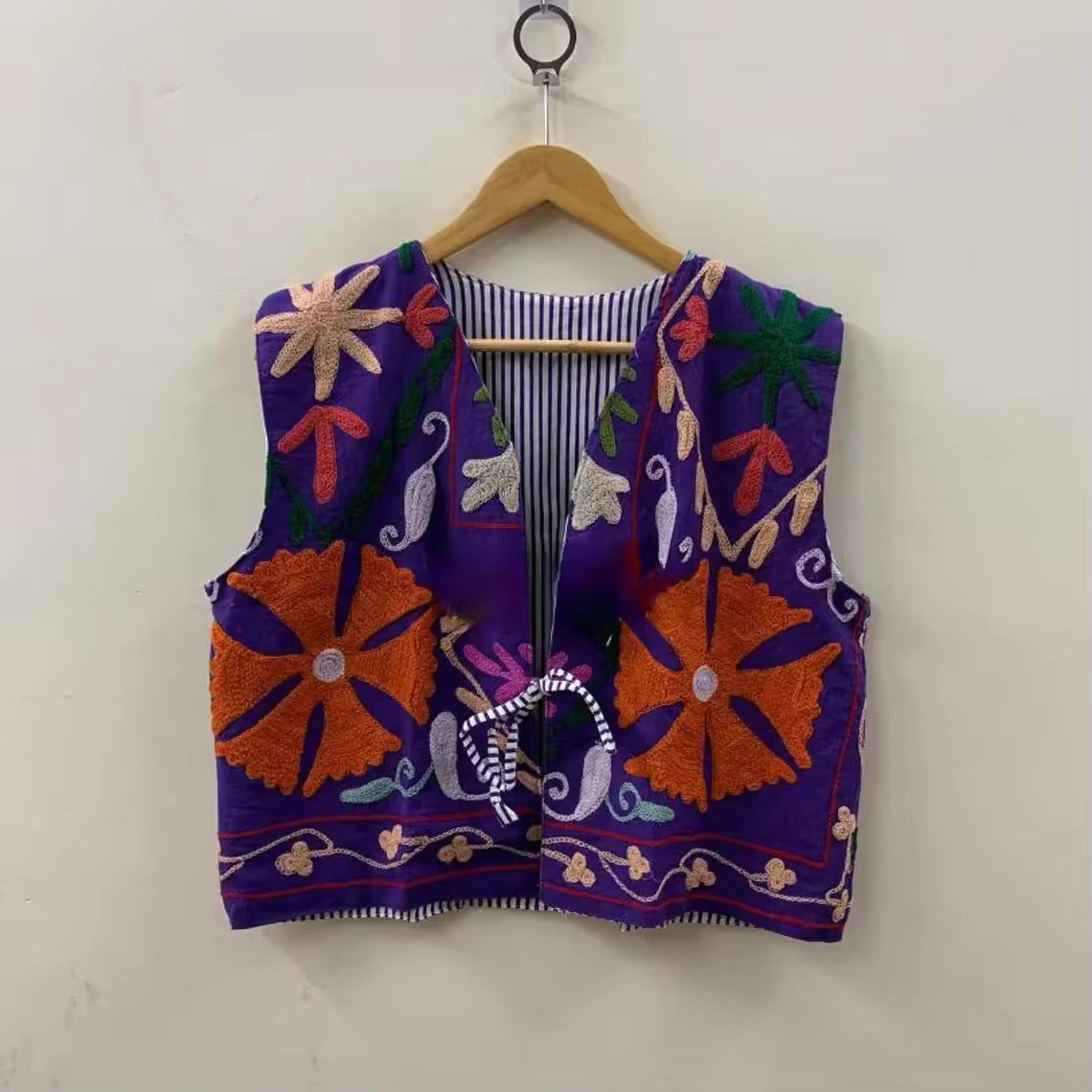 Chaleco terciopelo Bordado a Mano • Técnica Suzani