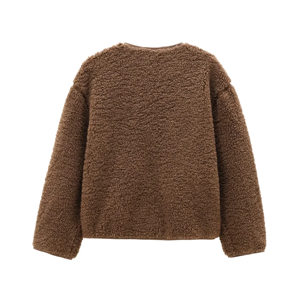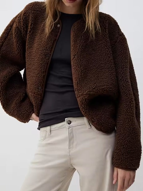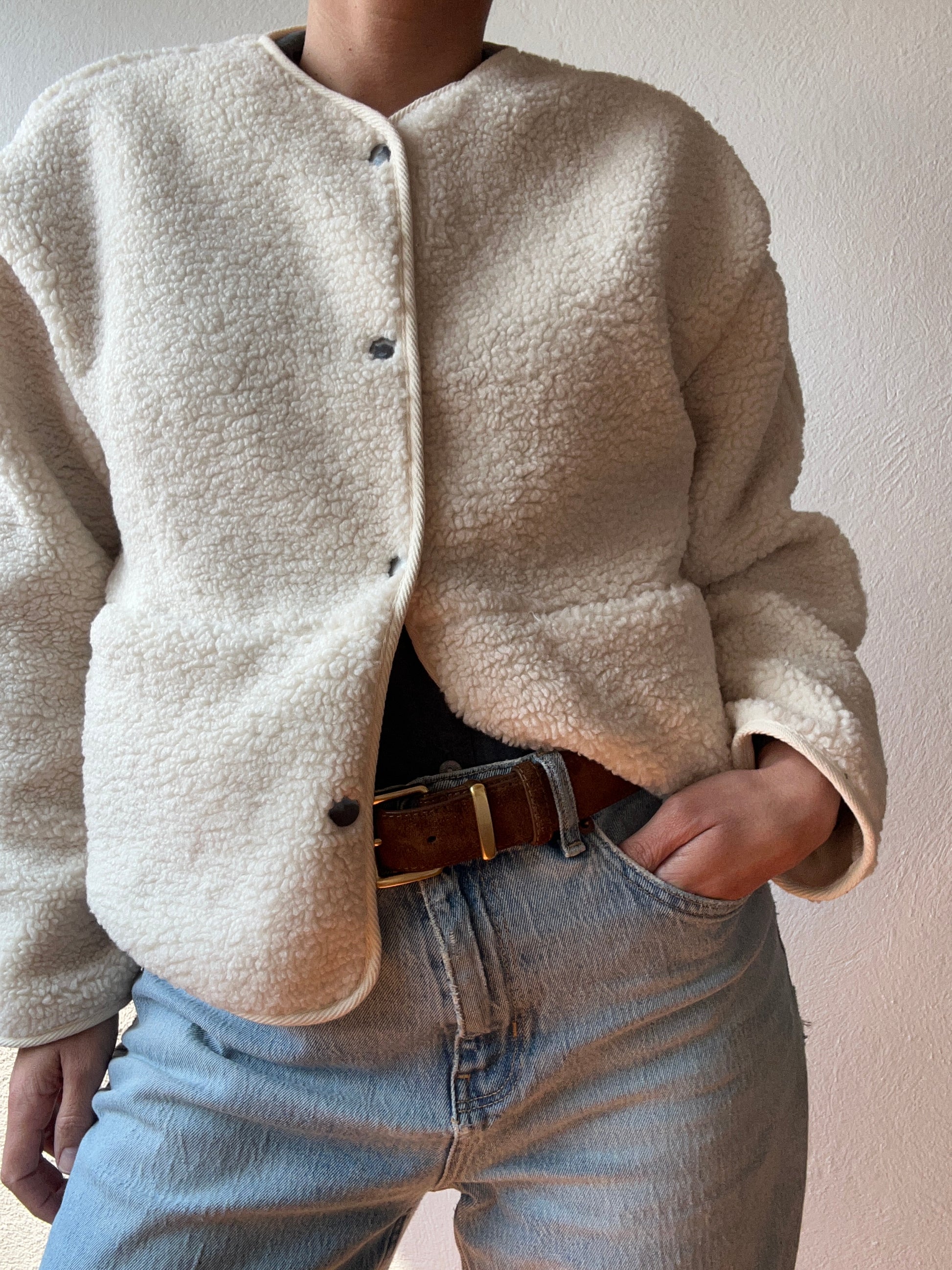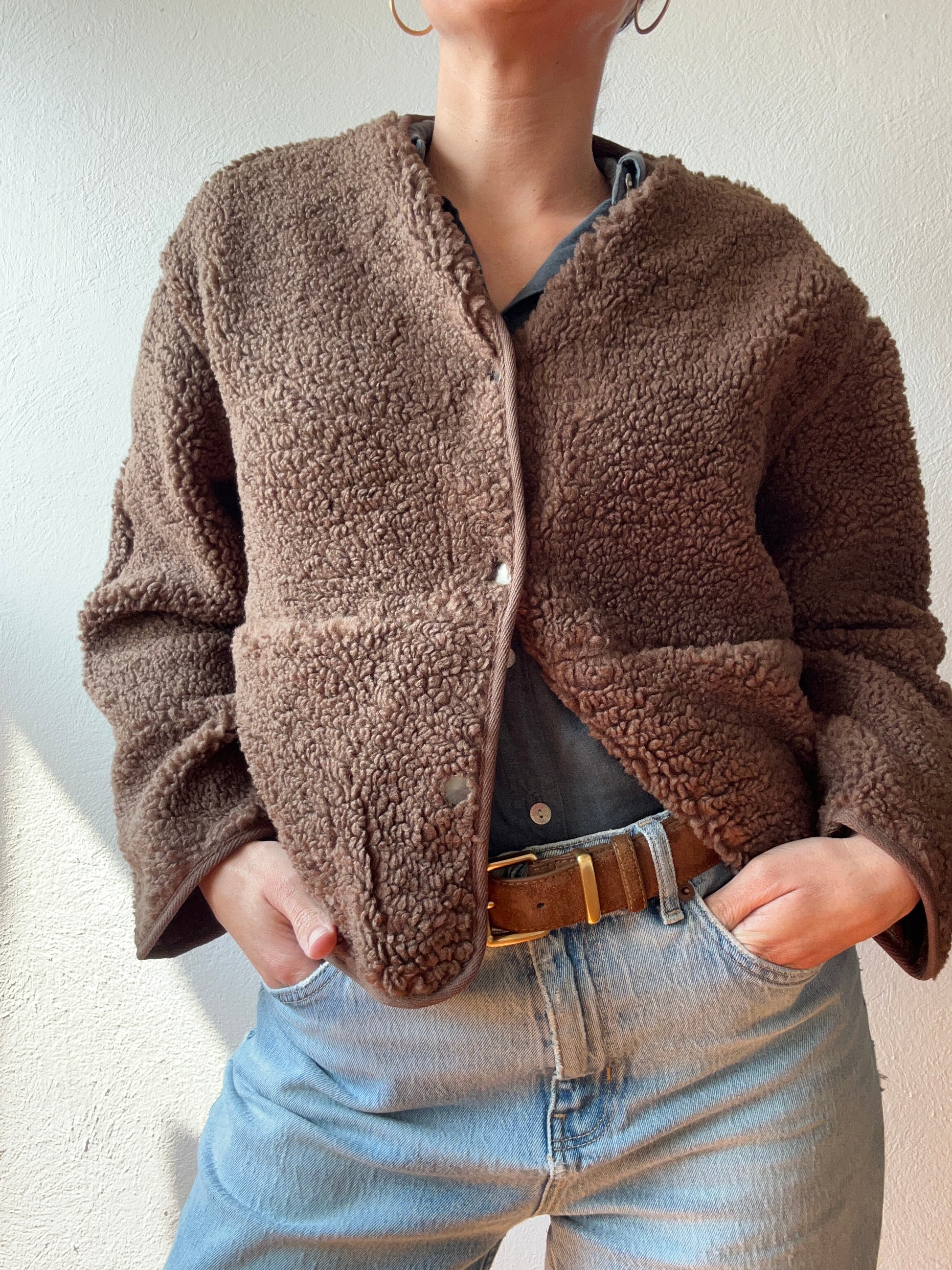 Chamarra tipo borrego en tres colores. Se cierra con botones.