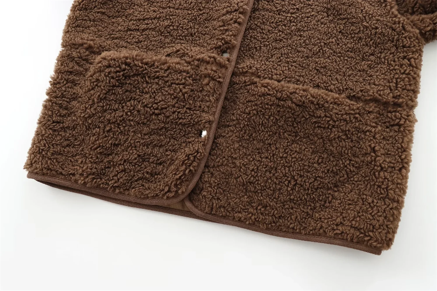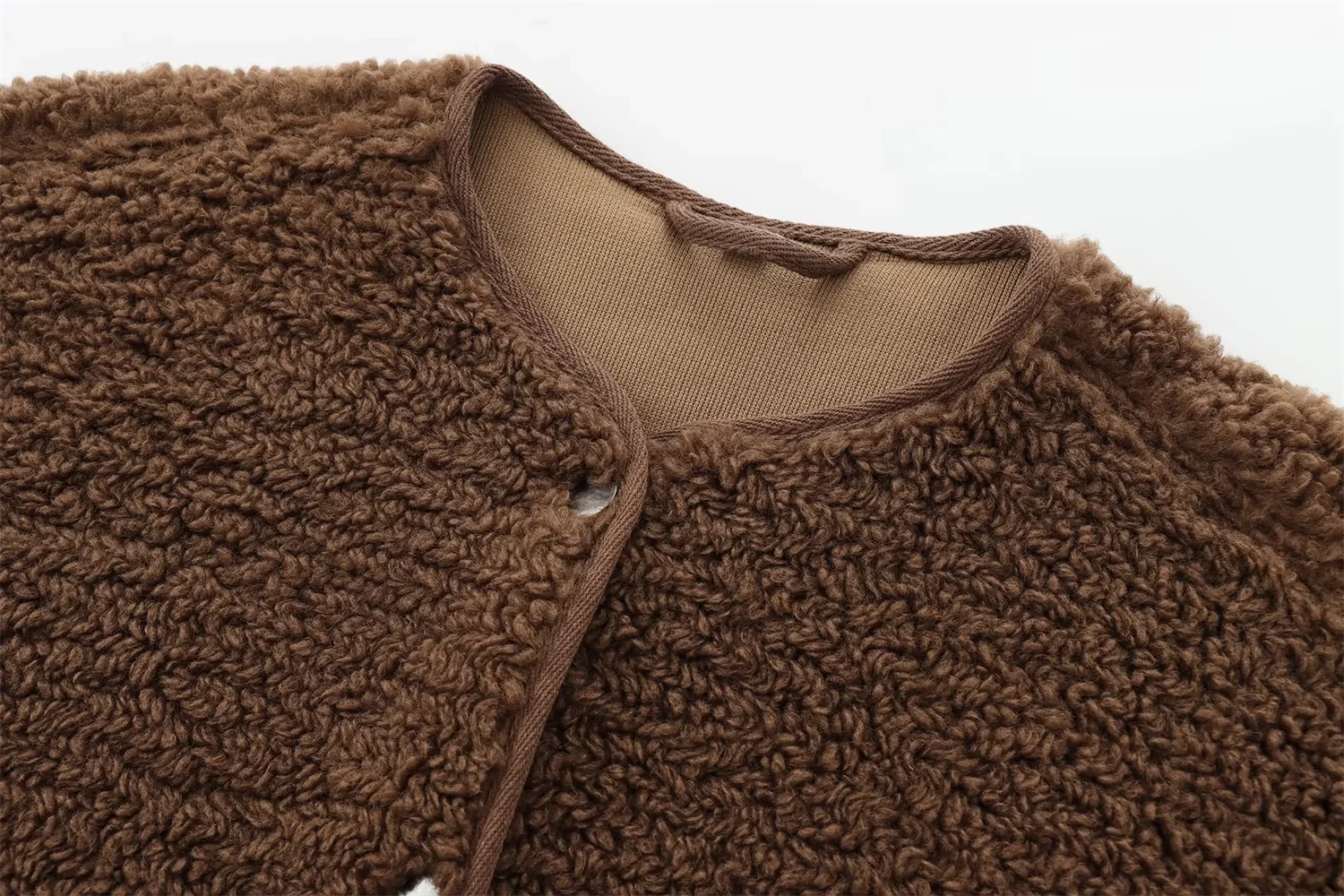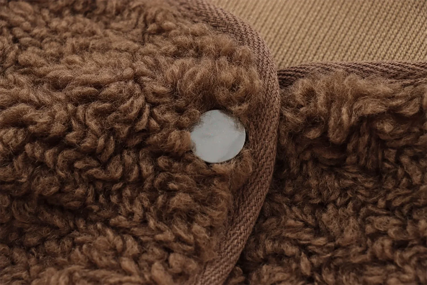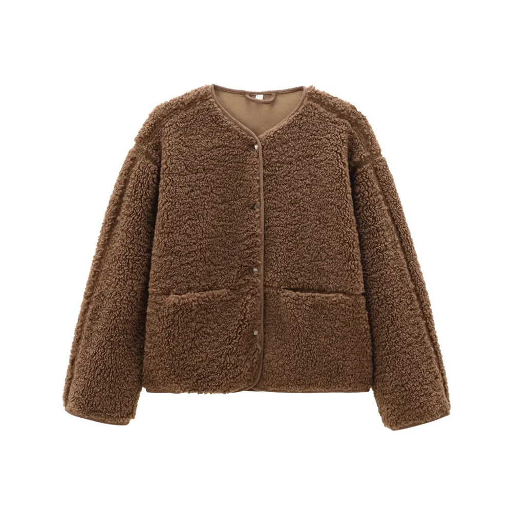 Chamarra tipo borrego en tres colores. Se cierra con botones.