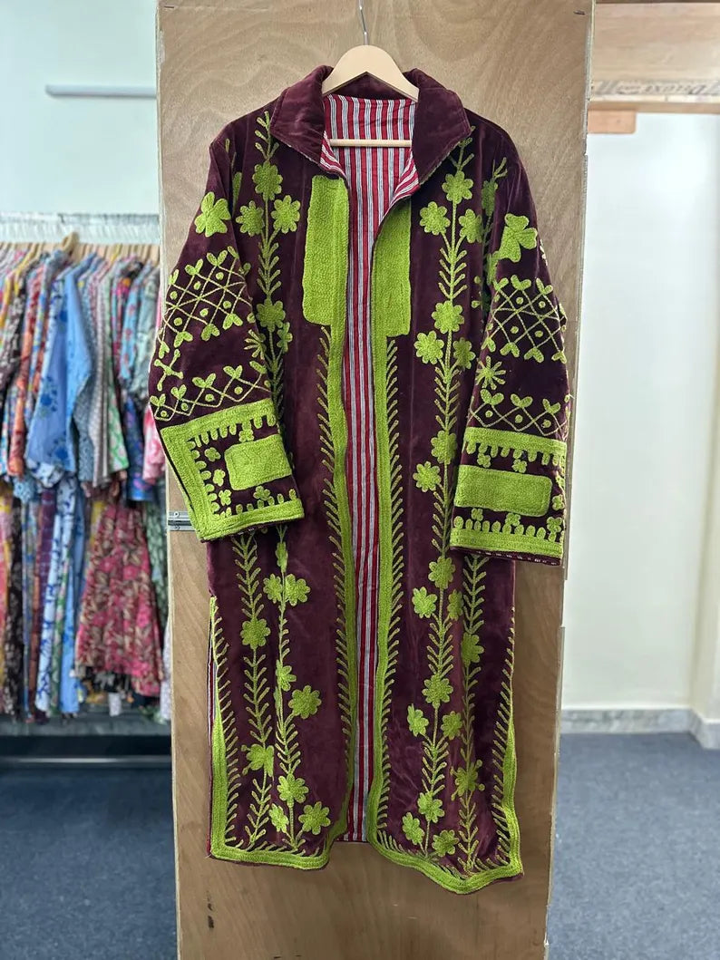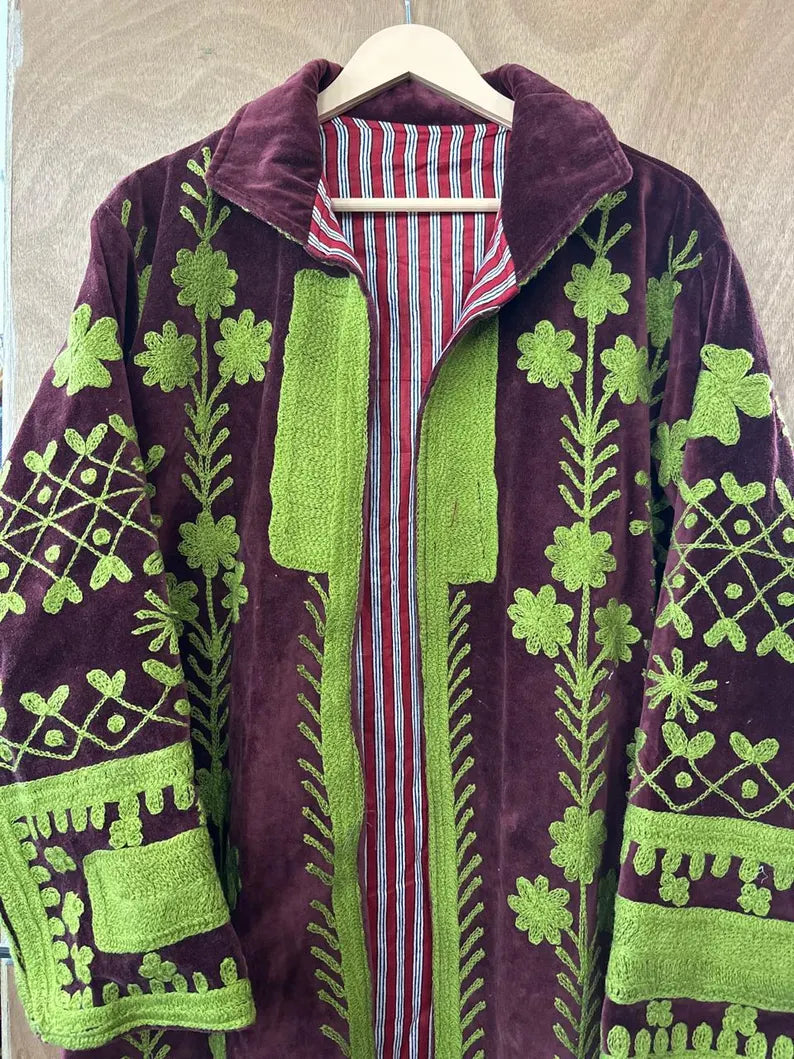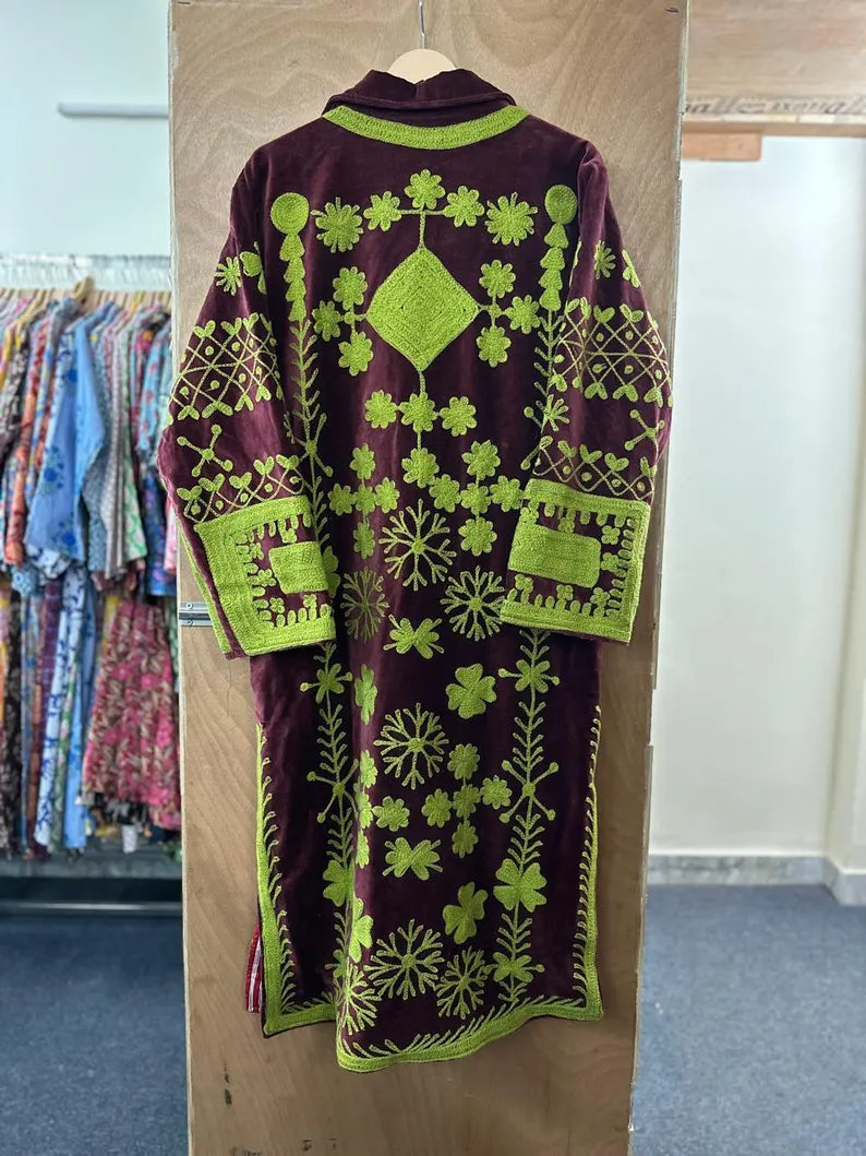 Abrigo terciopelo Bordado a Mano • Técnica Suzani