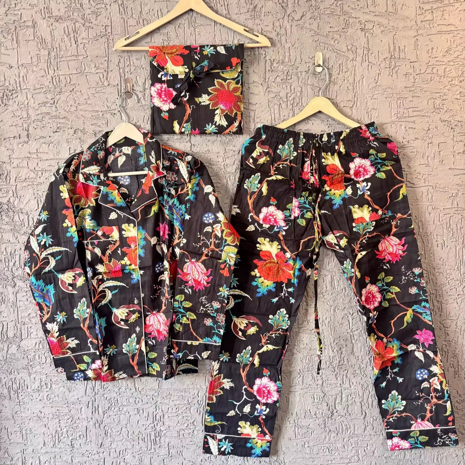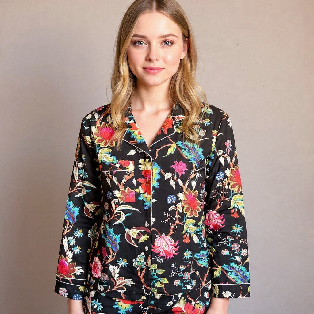 Pijama tigres y flores negro