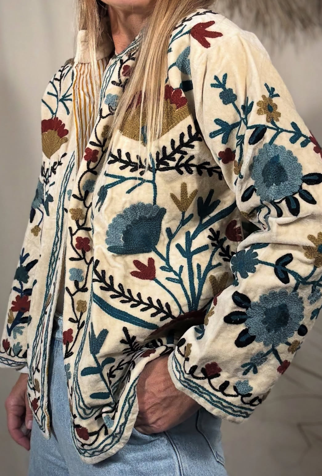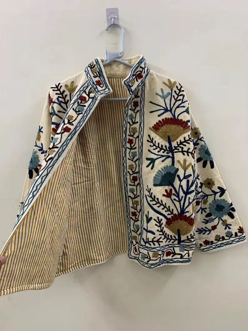 Saco terciopelo Bordado a Mano • Técnica Suzani