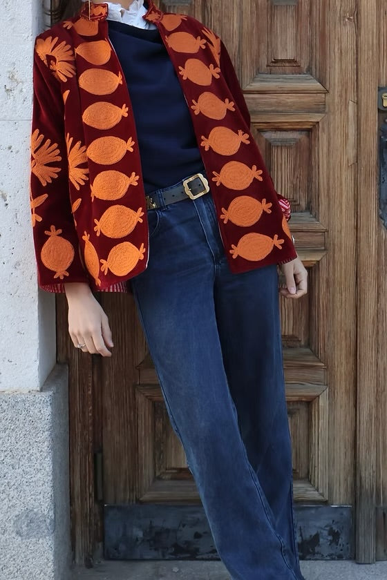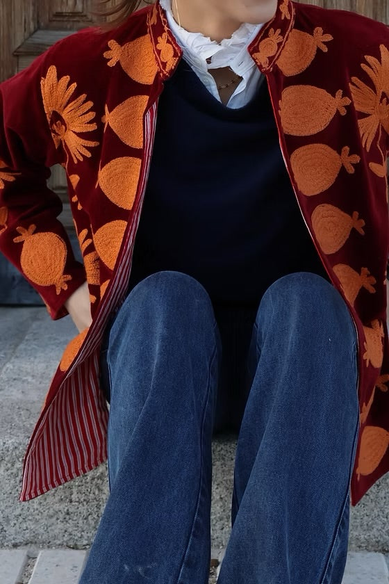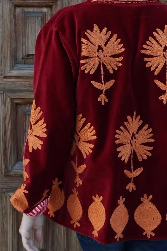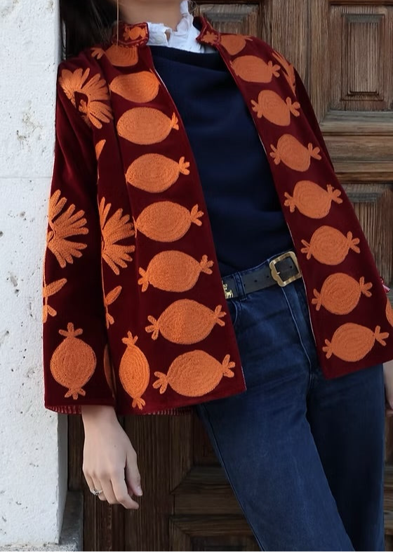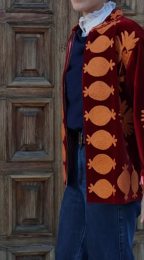 Saco terciopelo Bordado a Mano • Técnica Suzani